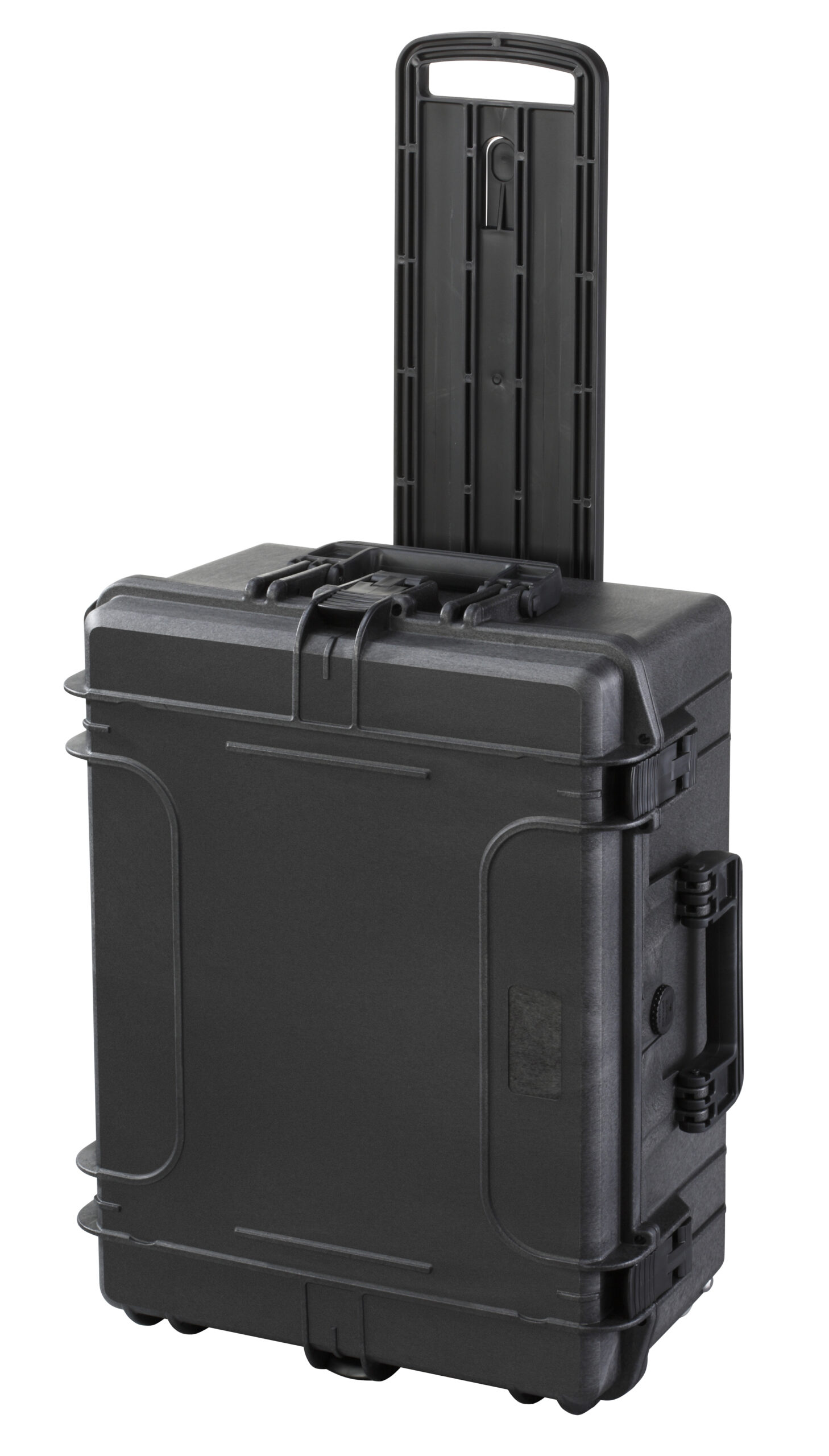 100% dustproof and waterproof, with extendable trolley handle and smooth-rolling wheels. Impact-resistant according to STANAG DEF-STAN 81-41 and temperature-resistant from -30°C to +90°C.