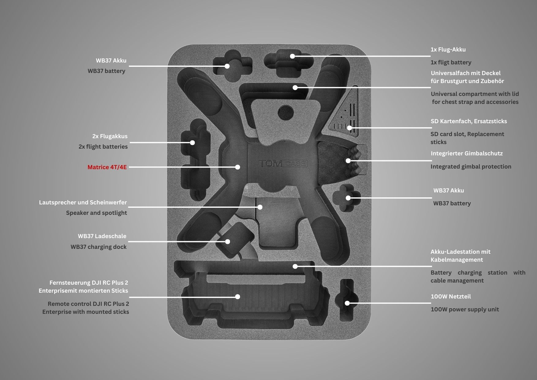 MAXIMUM PROTECTION AND “READY TO FLY”: Designed for professional use, this outdoor backpack provides full protection for the DJI Matrice 4 series. The drone can be transported unfolded with mounted propellers and with or without the original gimbal guard – fully flight-ready for immediate deployment on site. The gimbal is protected against shocks and damage by an integrated soft foam insert.